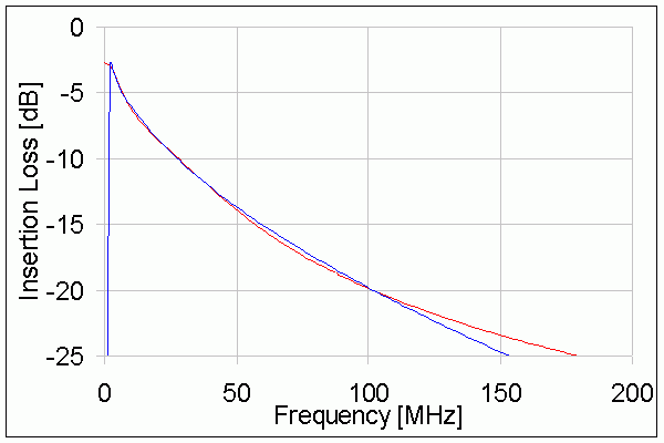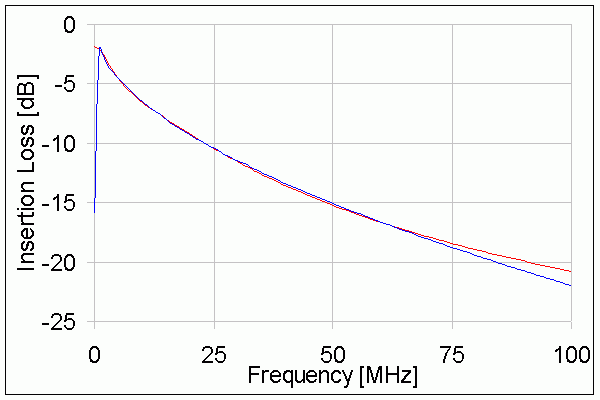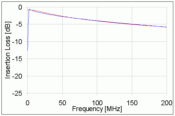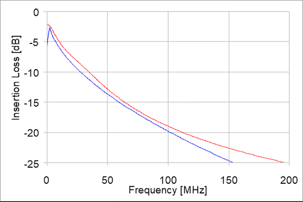 Insertion Loss The insertion loss, also called attenuation, is the amount of signal loss by the insertion of the cable between the signal's source and the device under test. Doubling the length results in about twice the insertion loss. |
