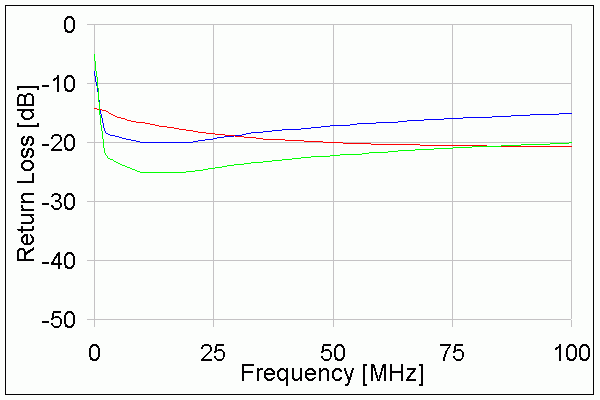 Click on any of the Graphs to get a larger View. The graphs assume a source impedance of 100 ohms. Connecting a device with a different impedance will affect the curve, as is the case with actual cable. |